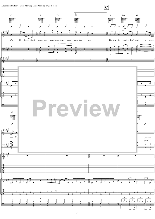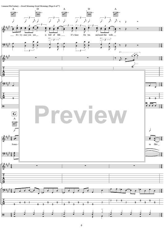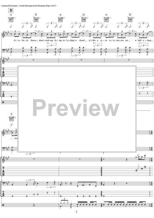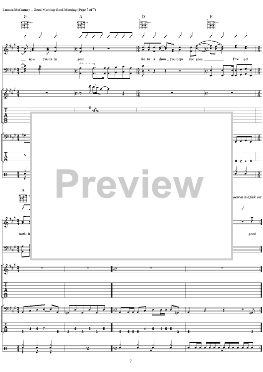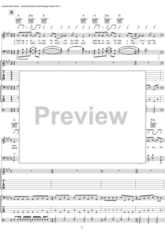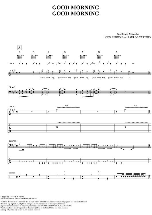 "Good Morning Good Morning" Sheet Music by The Beatles