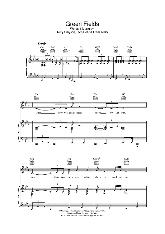 Digital Sheet Music for Green Fields by Terry Gilkyson, Richard Dehr, Frank Miller scored for Piano/Vocal/Chords; id:395566