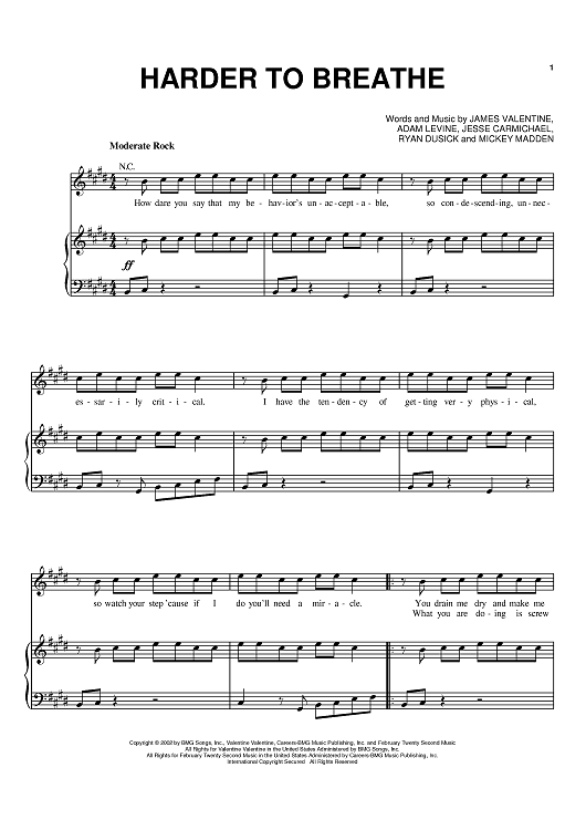 Digital Sheet Music for Harder To Breathe by Adam Levine, Jesse Carmichael, Maroon 5, James Valentine scored for Piano/Vocal/Chords; id:372966