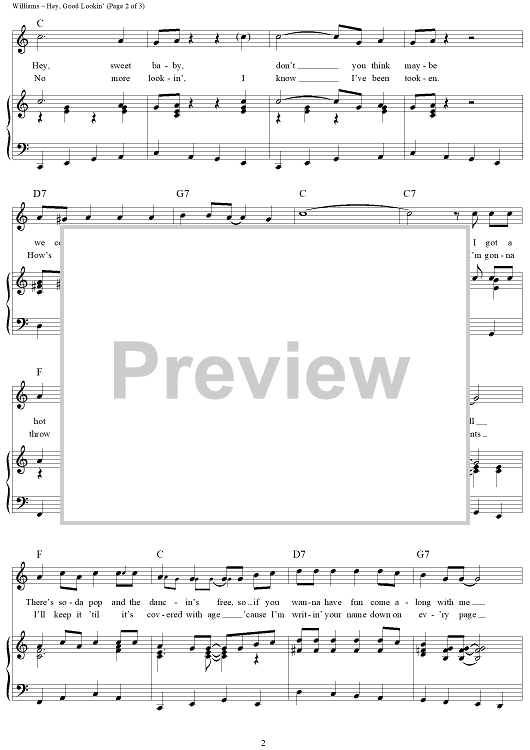 Digital Sheet Music for Hey, Good Lookin' by Hank Williams scored for Piano/Vocal/Chords; id:360932