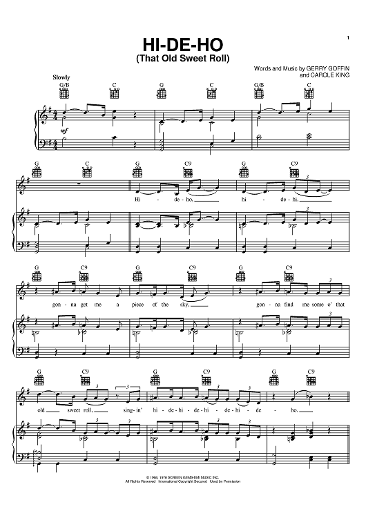 Digital Sheet Music for Hi-De-Ho (That Old Sweet Roll) by Carole King, Blood, Sweat & Tears, Gerry Goffin scored for Piano/Vocal/Chords; id:394538