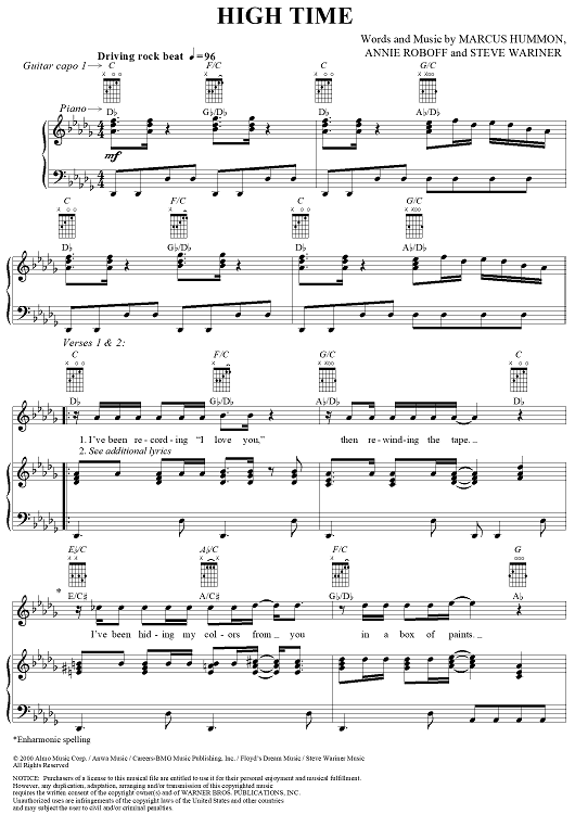 Digital Sheet Music for High Time by Steve Wariner, Annie Roboff, Marcus Hummon scored for Piano/Vocal/Chords; id:286460