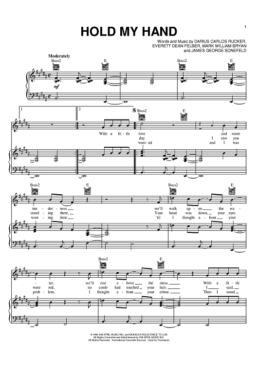 Digital Sheet Music for Hold My Hand by Hootie & the Blowfish, Jim Sonefeld, Darius Rucker, Dean Felber scored for Piano/Vocal/Chords; id:368324