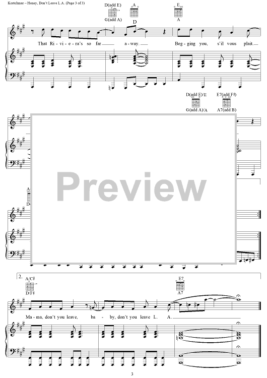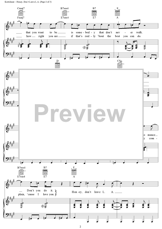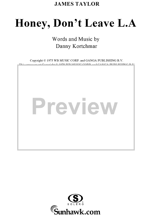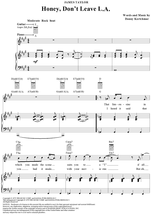 Digital Sheet Music for Honey, Don't Leave L.A. by James Taylor, Danny Kortchmar scored for Piano/Vocal/Chords; id:250234