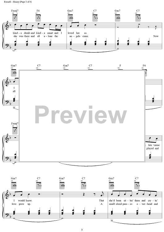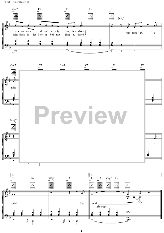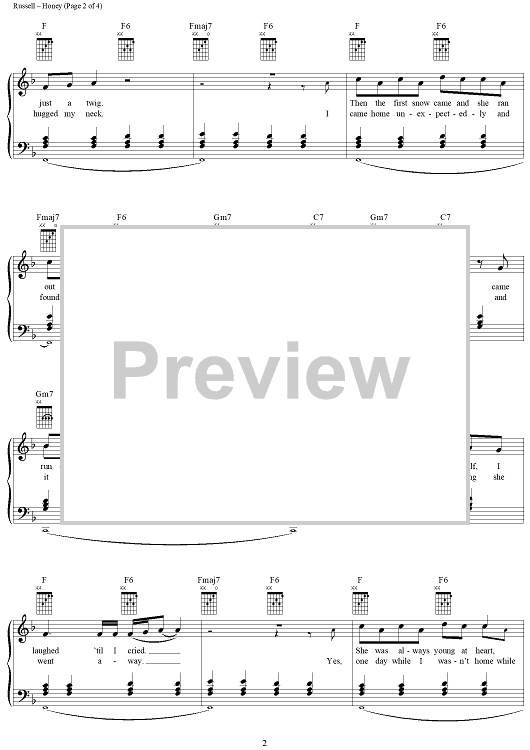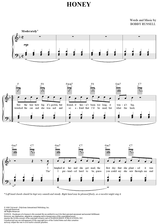 Digital Sheet Music for Honey by Bobby Goldsboro, Bobby Russell scored for Piano/Vocal/Chords; id:297216