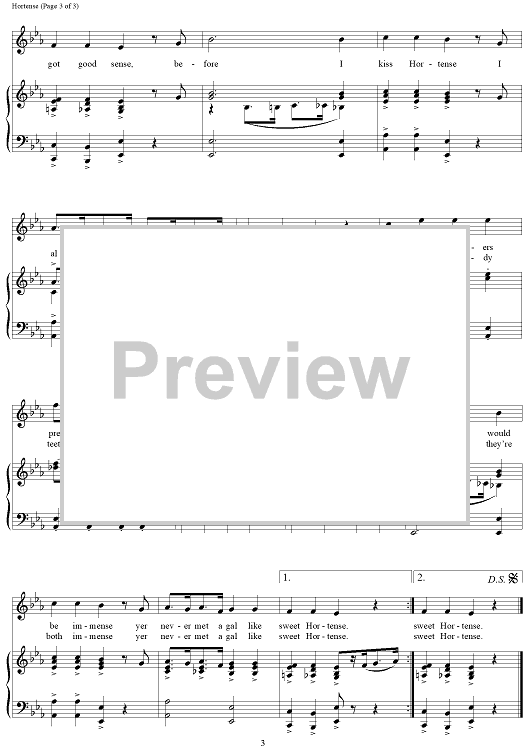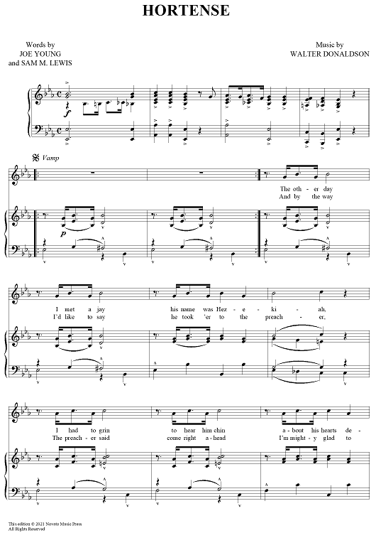 Digital Sheet Music for Hortense by Walter Donaldson, Samuel M. Lewis, Joseph Young scored for Piano/Vocal/Chords; id:367004
