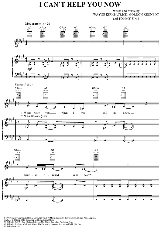 Digital Sheet Music for I Can't Help You Now by Tommy Sims, Wayne Kirkpatrick, Bonnie Raitt, Gordon Kennedy scored for Piano/Vocal/Chords; id:291123