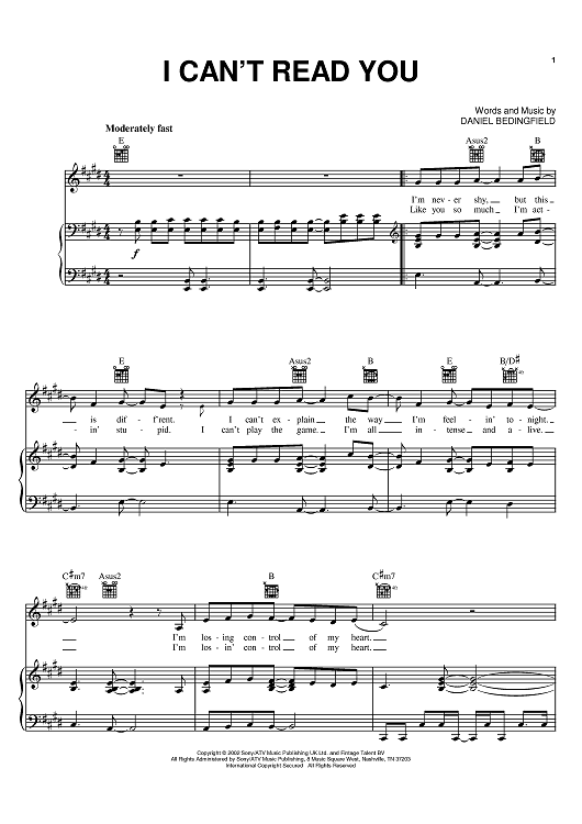 "I Can't Read You" Sheet Music by Daniel Bedingfield