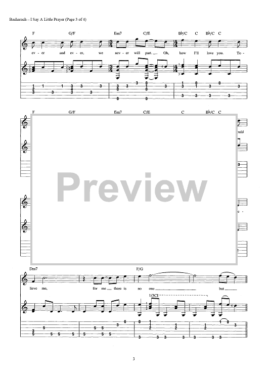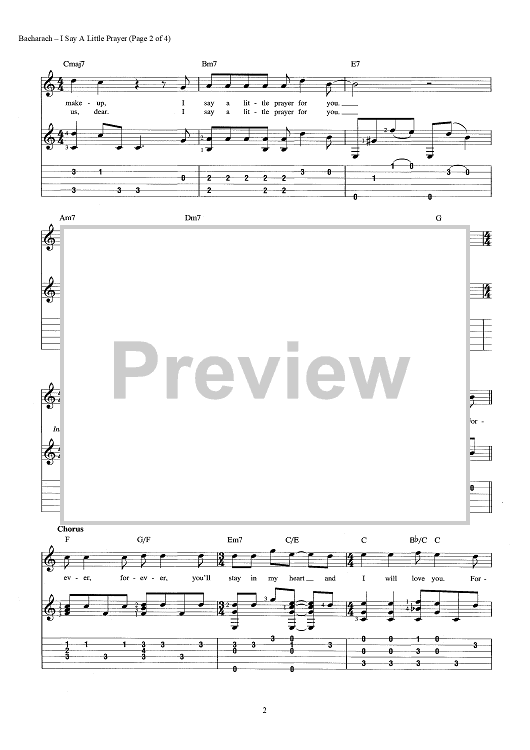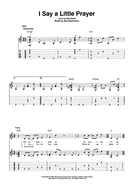 Digital Sheet Music for I Say A Little Prayer by Hal David, Burt Bacharach scored for Guitar Tab/Vocal/Chords; id:442863
