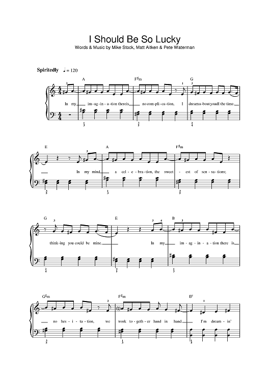 Digital Sheet Music for I Should Be So Lucky by Kylie Minogue, Mike Stock, Matt Aitken, Pete Waterman scored for Piano/Vocal/Chords; id:395623