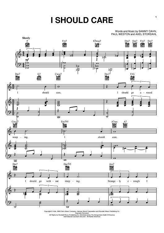 Digital Sheet Music for I Should Care by Sammy Cahn, Axel Stordahl, Paul Weston scored for Piano/Vocal/Chords; id:394616