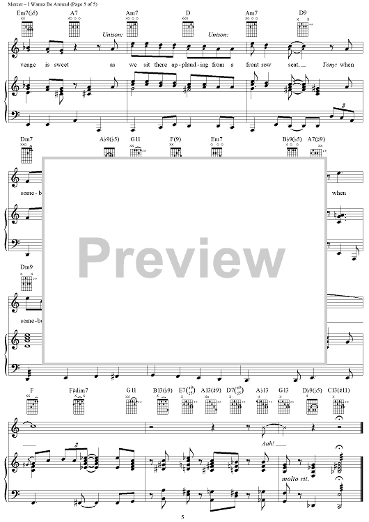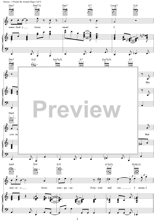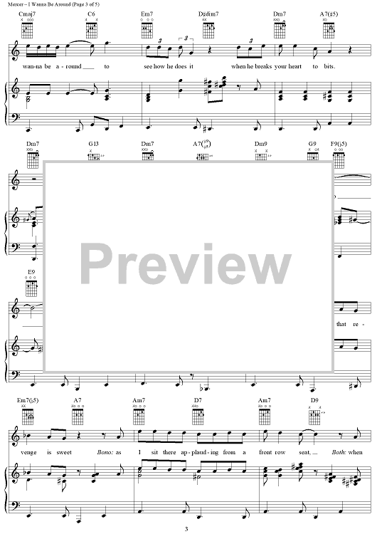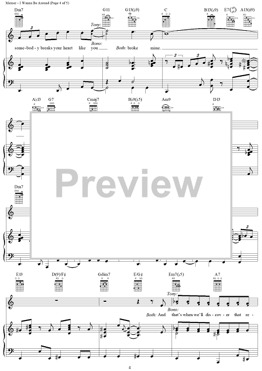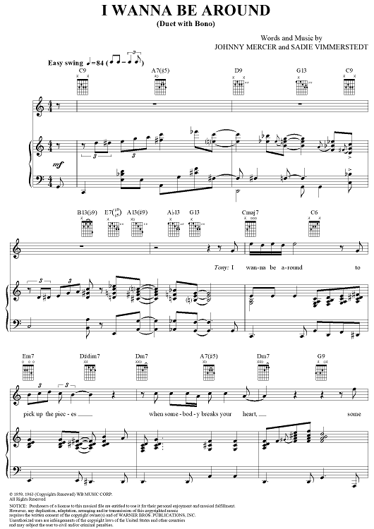 Digital Sheet Music for I Wanna Be Around by Johnny Mercer, Tony Bennett, Sadie Vimmerstedt, Bono scored for Piano/Vocal/Chords; id:359348