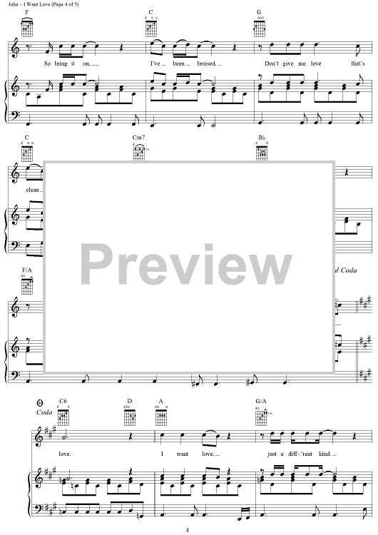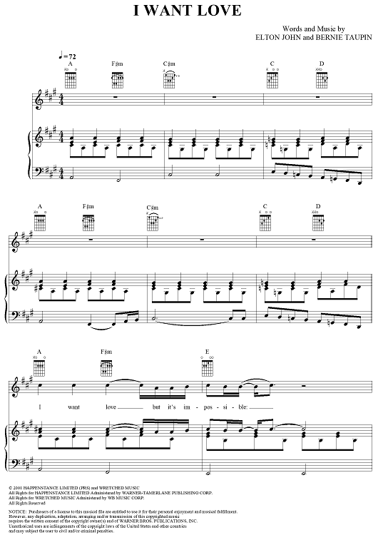 Digital Sheet Music for I Want Love by Elton John, Bernie Taupin scored for Piano/Vocal/Chords; id:286123