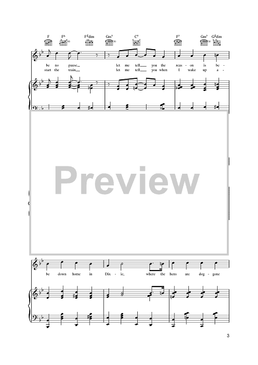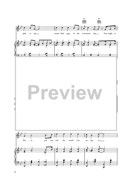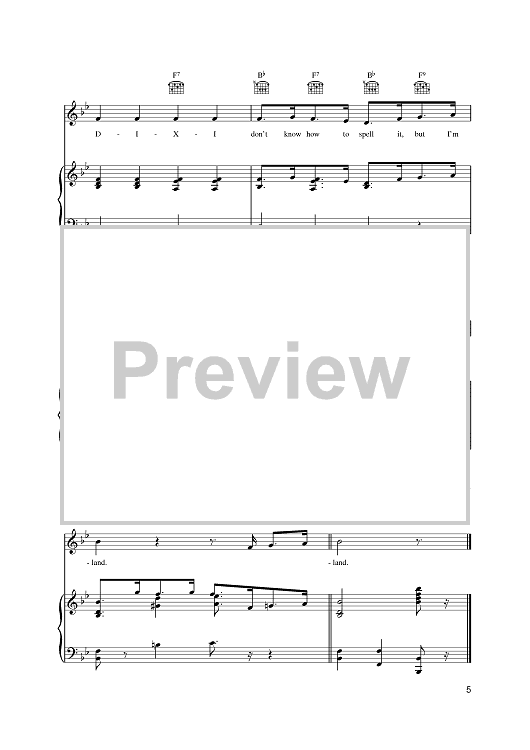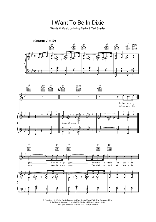 Digital Sheet Music for I Want To Be In Dixie by Irving Berlin, Ted Snyder scored for Piano/Vocal/Chords; id:394431