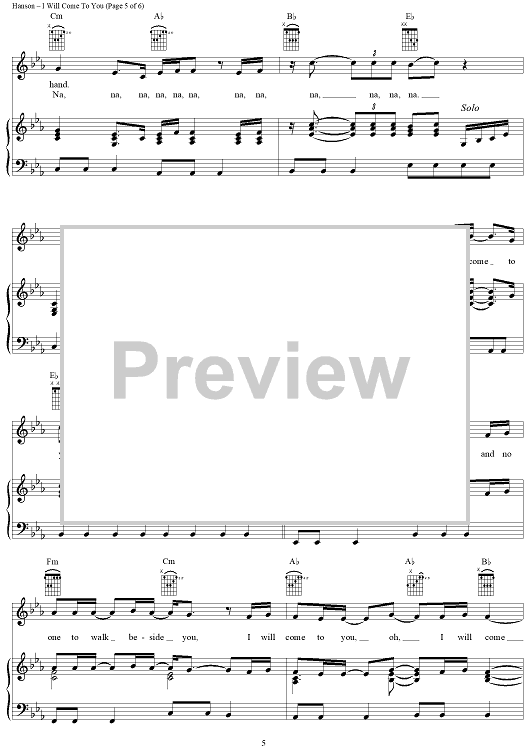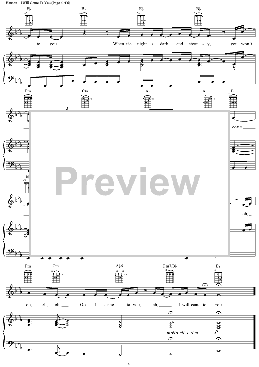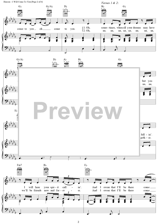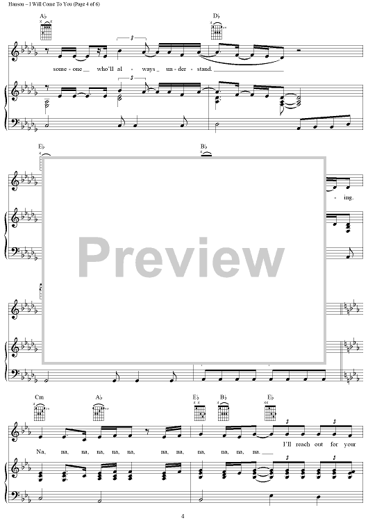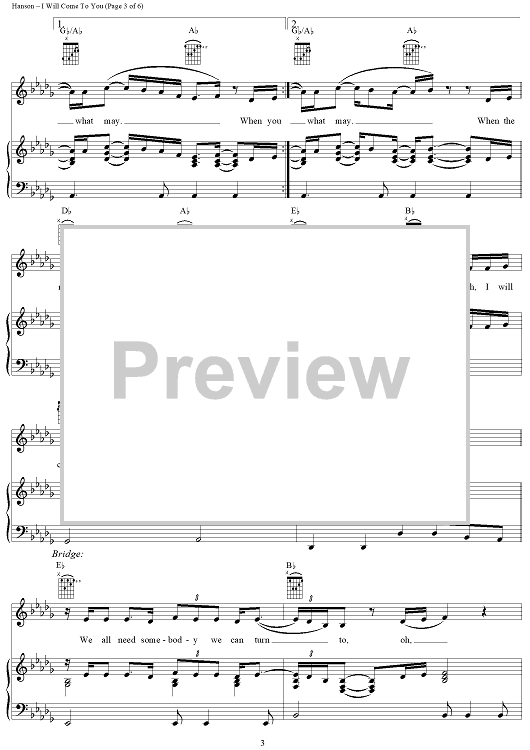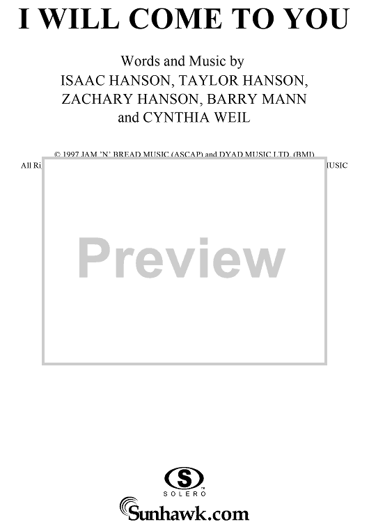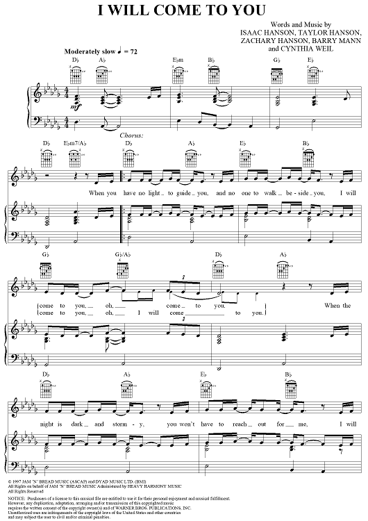 Digital Sheet Music for I Will Come To You by Isaac Hanson, Taylor Hanson, Zac Hanson, Barry Mann, Cynthia Weil, Hanson scored for Piano/Vocal/Chords; id:233558