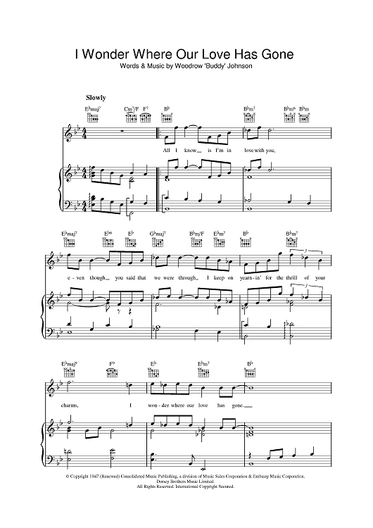 Digital Sheet Music for I Wonder Where Our Love Has Gone by Woodrow Buddy Johnson scored for Piano/Vocal/Chords; id:395599