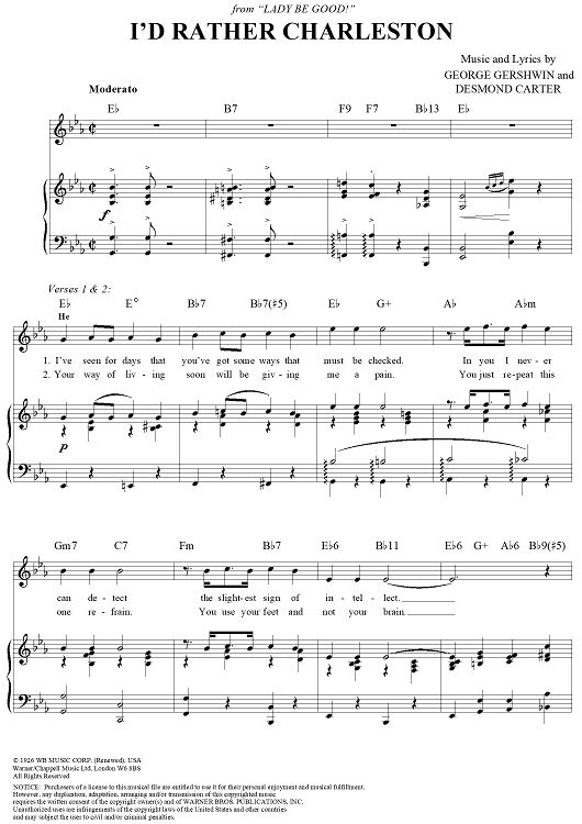 Digital Sheet Music for I'd Rather Charleston by George Gershwin, Desmond Carter scored for Piano/Vocal/Chords; id:268861