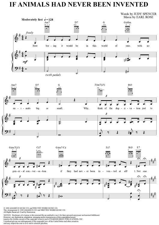 Digital Sheet Music for If Animals Had Never Been Invented by Earl Rose, Judy Spencer scored for Piano/Vocal/Chords; id:255571