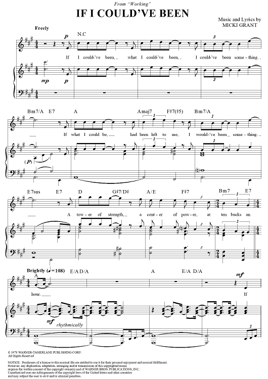 Digital Sheet Music for If I Could've Been by Micki Grant scored for Piano/Vocal/Chords; id:269451