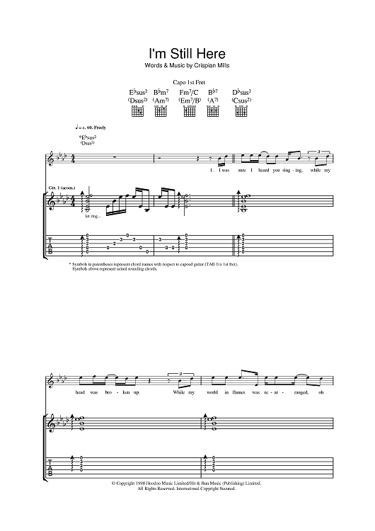 Digital Sheet Music for I'm Still Here by Kula Shaker, Crispian Mills scored for Guitar Tab; id:394920