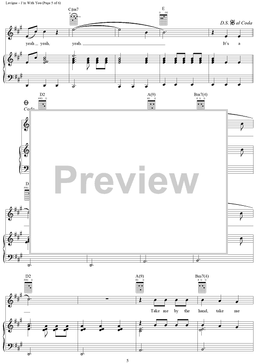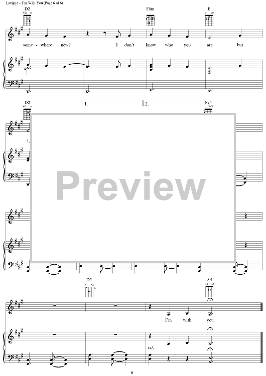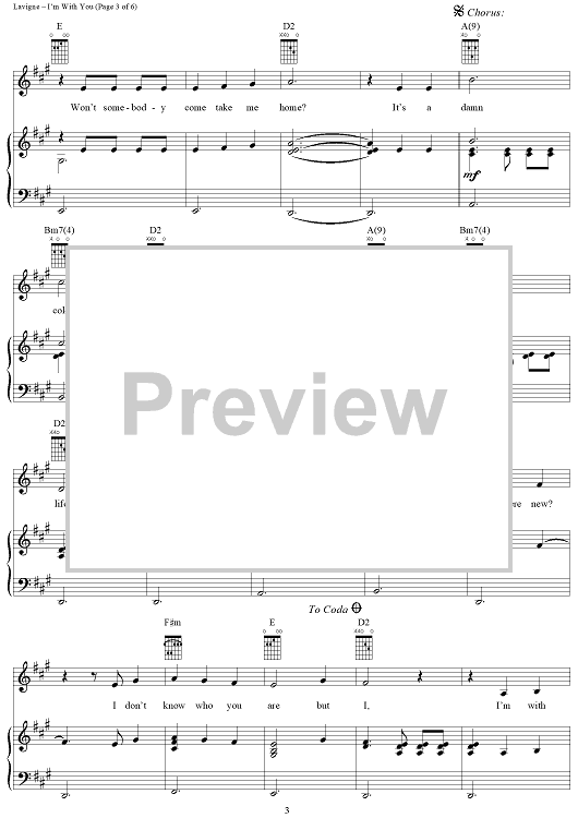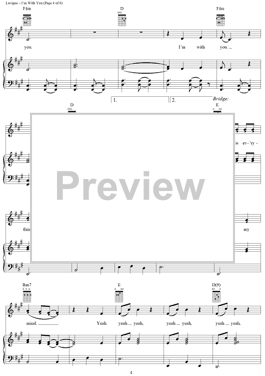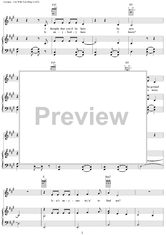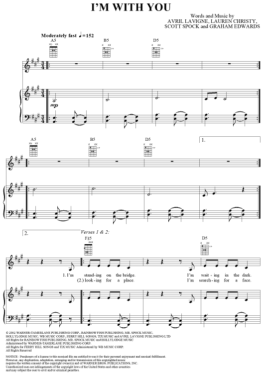Digital Sheet Music for I'm With You by Lauren Christy, Avril Lavigne, Graham Edwards, Scott Spock scored for Piano/Vocal/Chords; id:294042