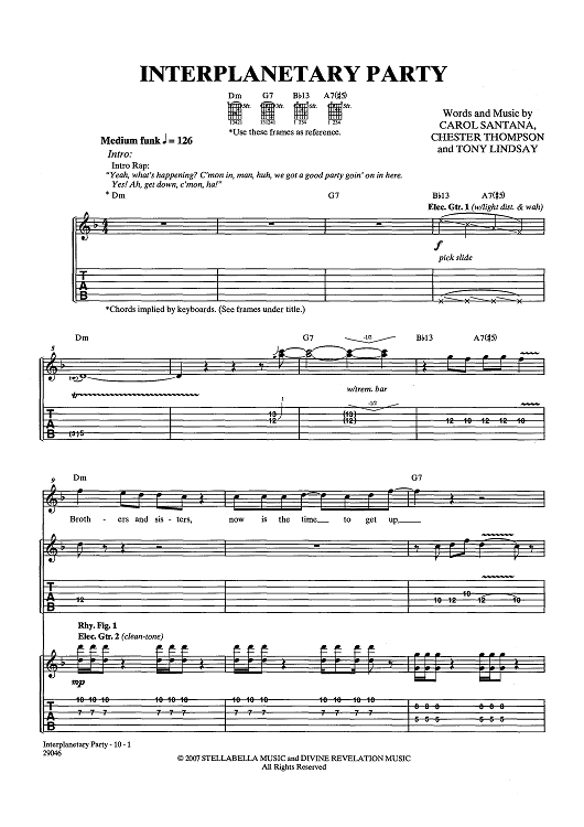 Digital Sheet Music for Interplanetary Party by Carlos Santana, Chester Thompson, Tony Lindsay, Santana scored for Guitar Tab/Vocal/Chords; id:438256