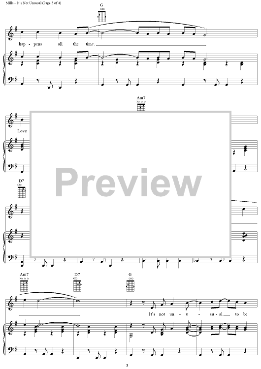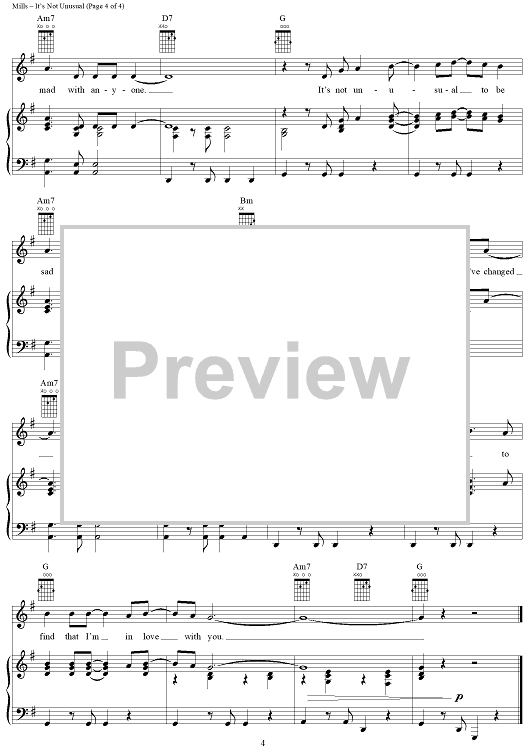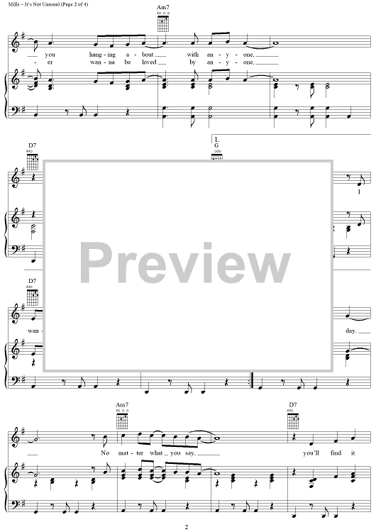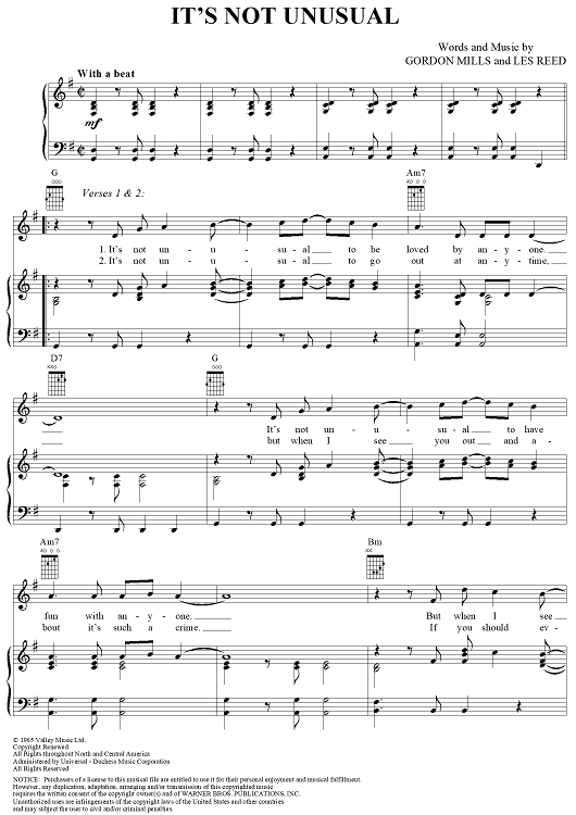 Digital Sheet Music for It's Not Unusual by Tom Jones, Les Reed, Gordon Mills scored for Piano/Vocal/Chords; id:297217