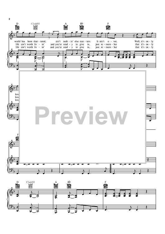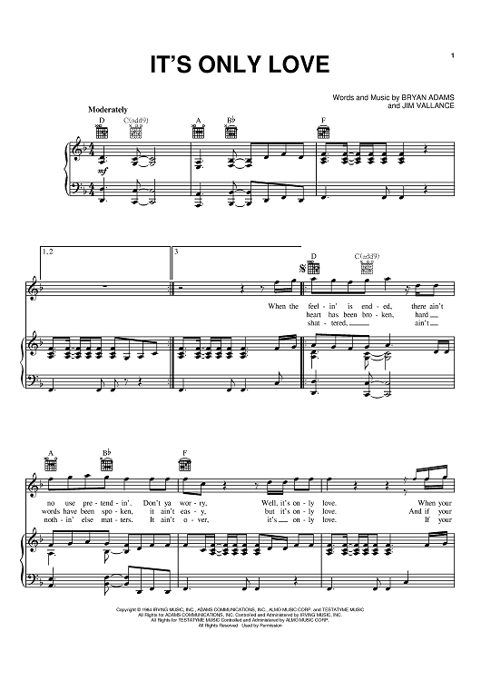 Digital Sheet Music for It's Only Love by Bryan Adams, Jim Vallance scored for Piano/Vocal/Chords; id:367731