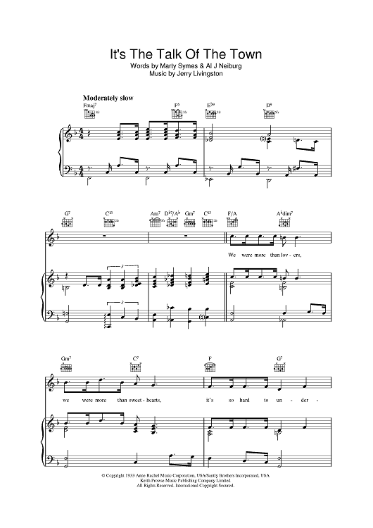 Digital Sheet Music for It's The Talk Of The Town by Jerry Livingston, Marty Symes, Al Neiburg scored for Piano/Vocal/Chords; id:395601