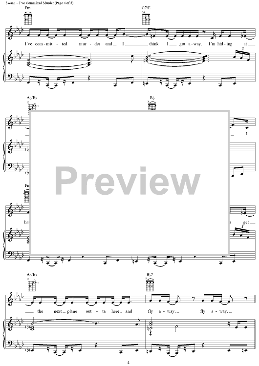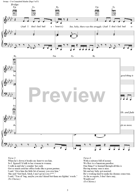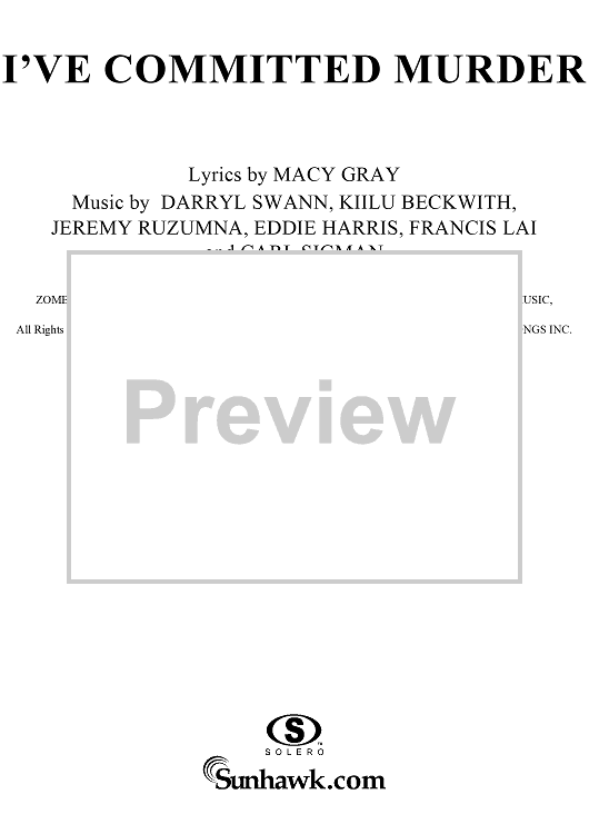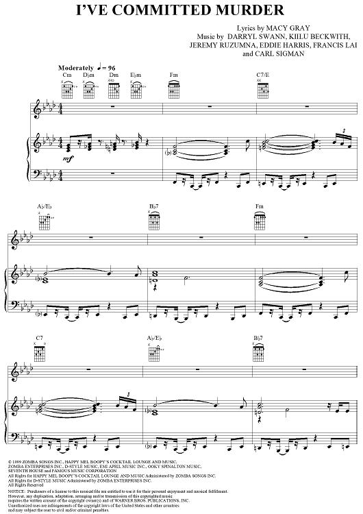 Digital Sheet Music for I've Committed Murder by Carl Sigman, Francis Lai, Macy Gray, Jeremy Ruzumna, Darryl Swann, Kiilu Beckwith, Eddie Harris scored for Piano/Vocal/Chords; id:283031