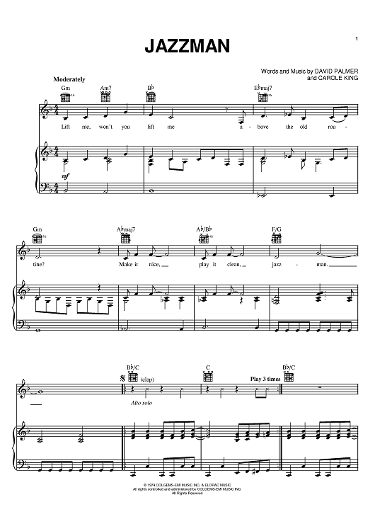 Digital Sheet Music for Jazzman by Carole King, David Palmer scored for Piano/Vocal/Chords; id:394541