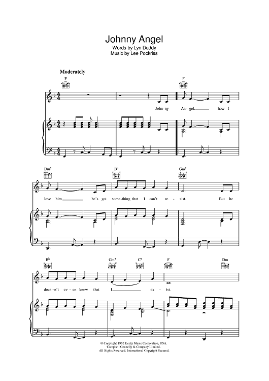 Digital Sheet Music for Johnny Angel by Lyn Duddy, Lee Pockriss, Lee Poskriss scored for Piano/Vocal/Chords; id:395600