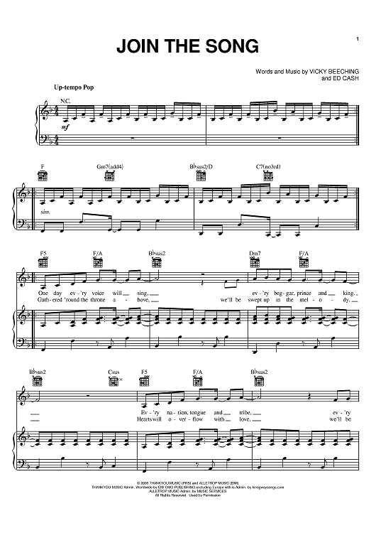 Digital Sheet Music for Join The Song by Vicky Beeching, Ed Cash scored for Piano/Vocal/Chords; id:396602