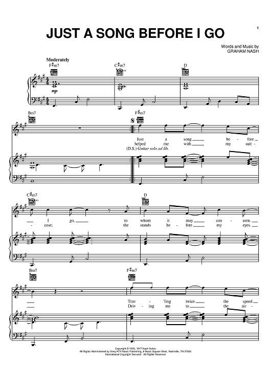 Digital Sheet Music for Just A Song Before I Go by Graham Nash, Crosby, Stills, Nash & Young scored for Piano/Vocal/Chords; id:369053