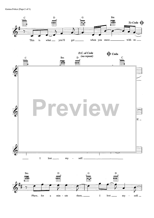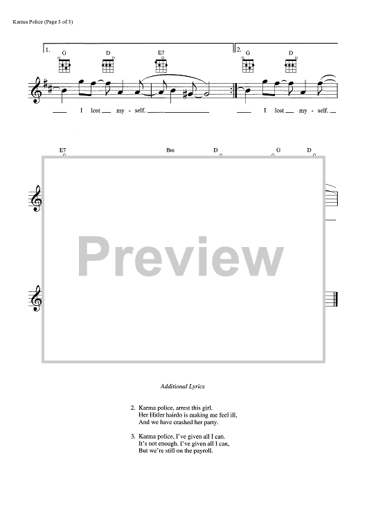 Digital Sheet Music for Karma Police by Thomas Yorke, Jonathan Greenwood, Philip Selway, Coz, Edward O'Brien scored for Ukulele/Vocal; id:465371