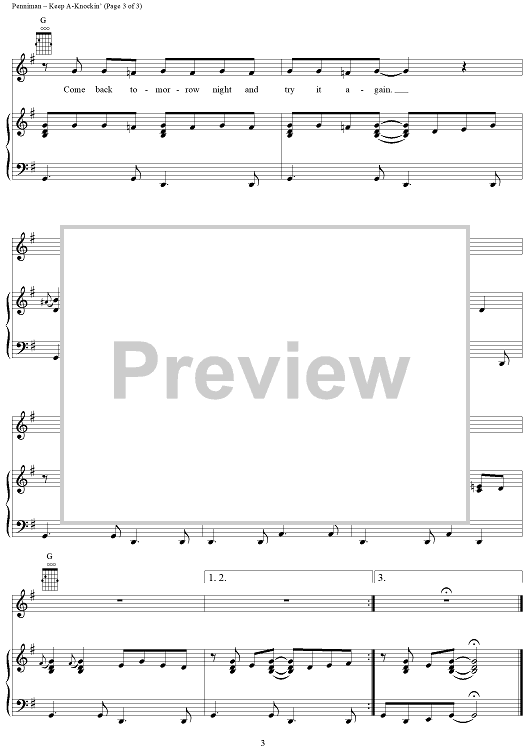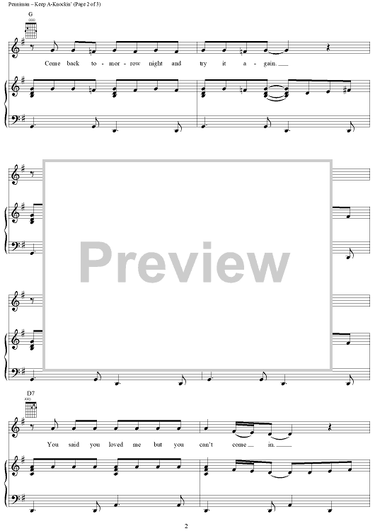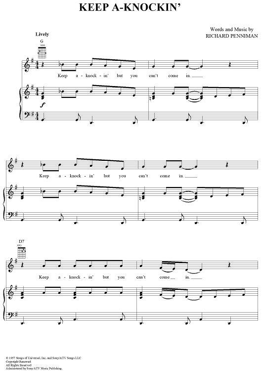 Digital Sheet Music for Keep A-Knockin' by Little Richard scored for Piano/Vocal/Chords; id:297236