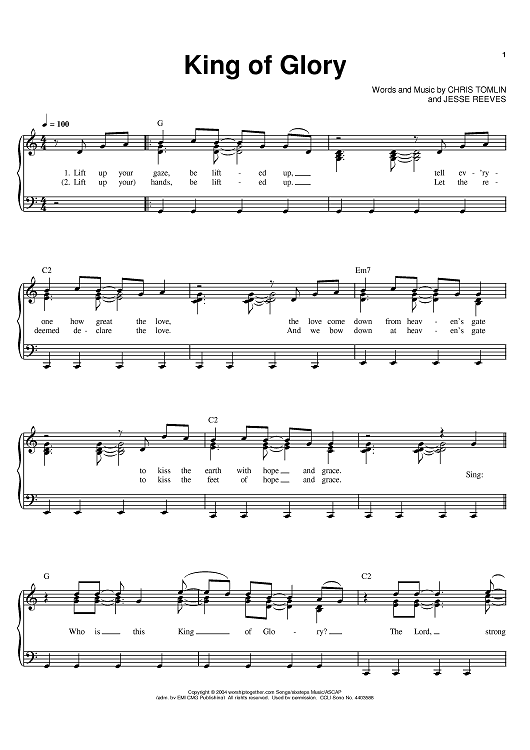 Digital Sheet Music for King Of Glory by Chris Tomlin, Jesse Reeves scored for Piano/Vocal/Chords; id:396165