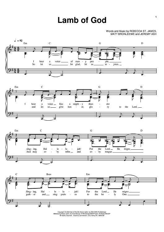 Digital Sheet Music for Lamb Of God by Rebecca St. James, Matt Bronleewe, Jeremy Ash scored for Piano/Vocal/Chords; id:393823