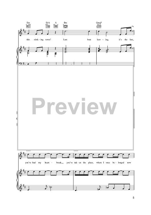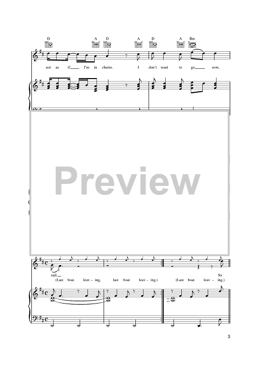 "Last Boat Leaving" Sheet Music by Elvis Costello