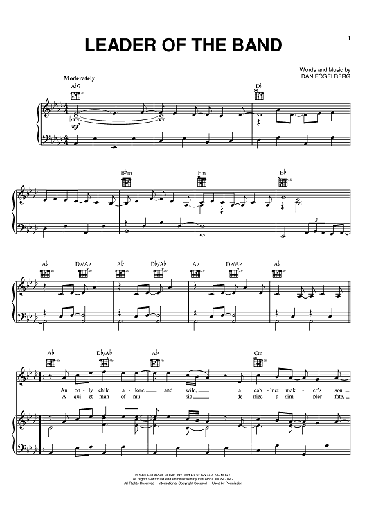 Digital Sheet Music for Leader Of The Band by Dan Fogelberg scored for Piano/Vocal/Chords; id:368083