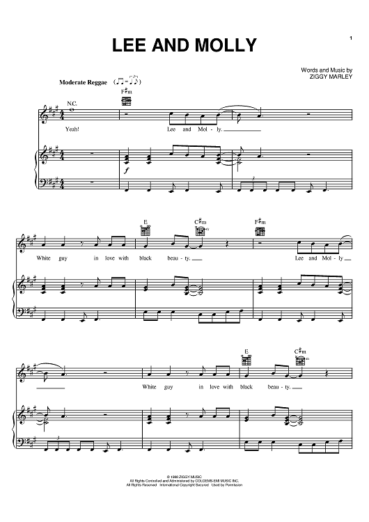 Digital Sheet Music for Lee And Molly by Ziggy Marley scored for Piano/Vocal/Chords; id:383569