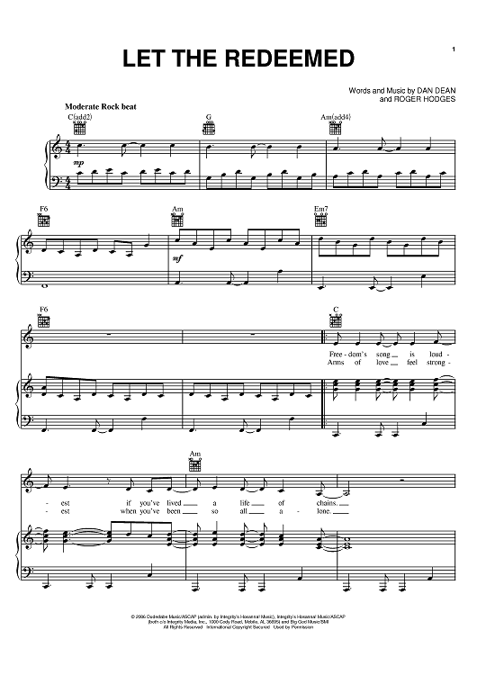 Digital Sheet Music for Let The Redeemed by Dan Dean, Roger Hodges, Phillips, Craig and Dean scored for Piano/Vocal/Chords; id:394578