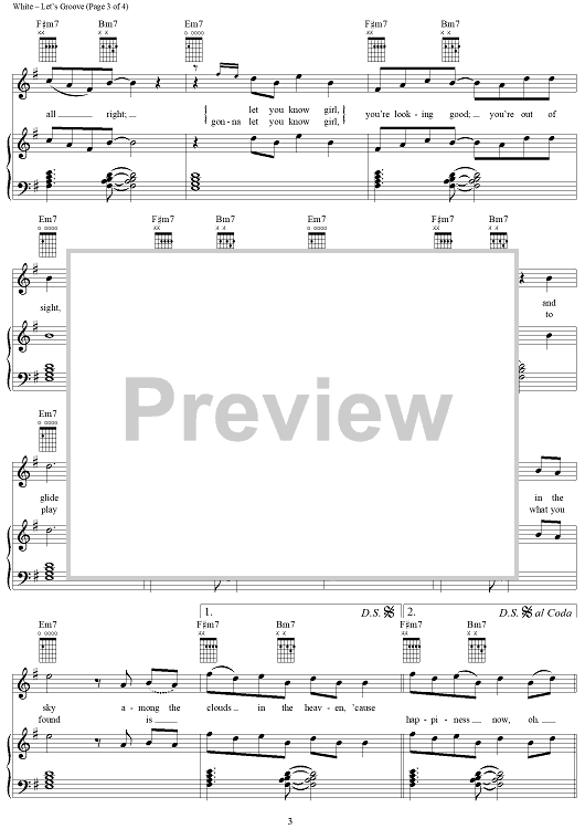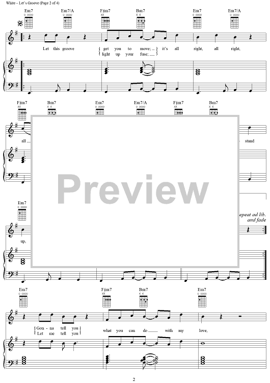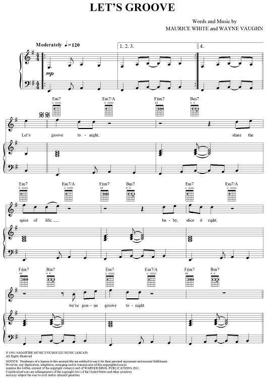 Digital Sheet Music for Let's Groove by Maurice White, Wayne Vaughn, Earth, Wind & Fire scored for Piano/Vocal/Chords; id:297065