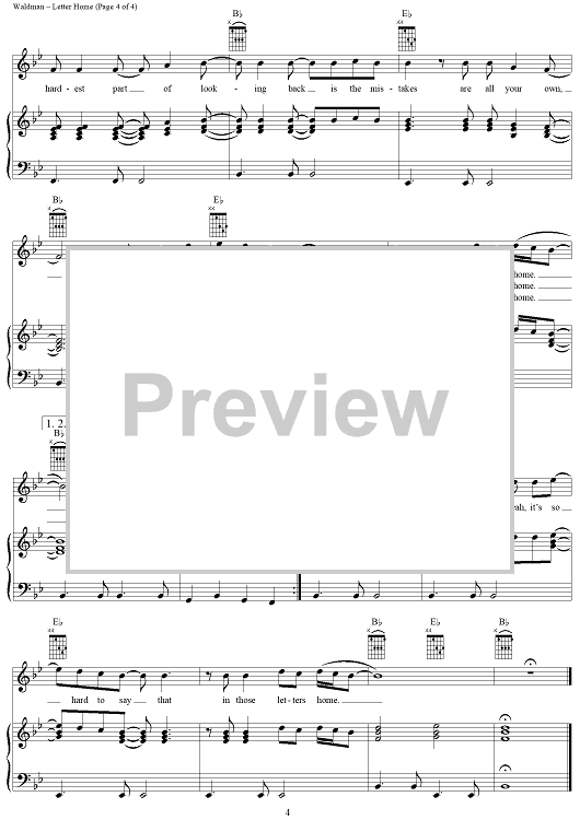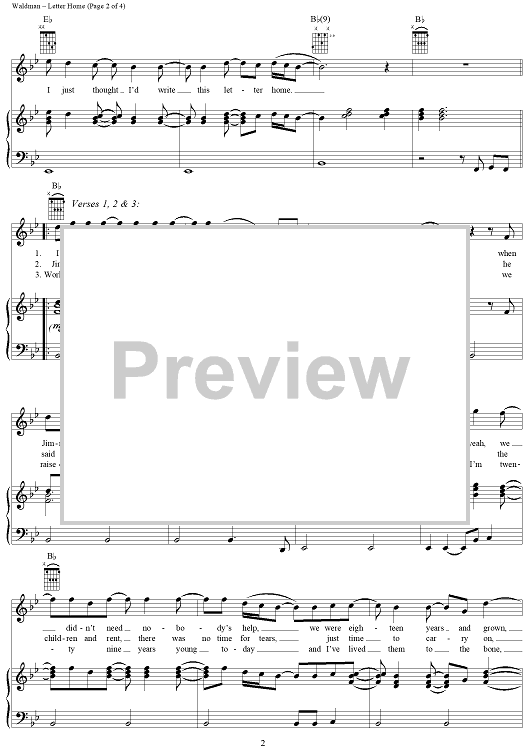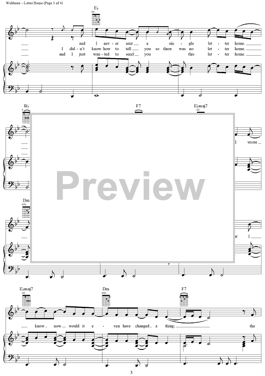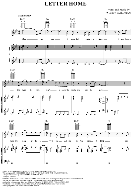 Digital Sheet Music for Letter Home by Wendy Waldman, Forester Sisters scored for Piano/Vocal/Chords; id:264623