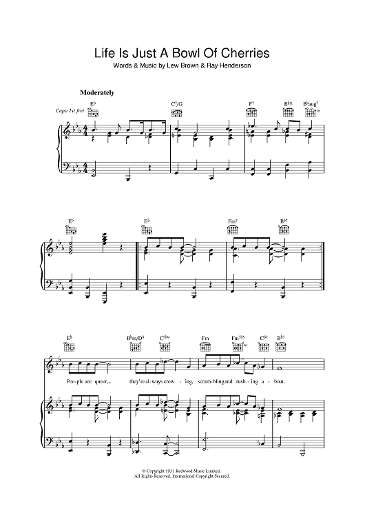 Digital Sheet Music for Life Is Just A Bowl Of Cherries by Ray Henderson, Lew Brown scored for Piano/Vocal/Chords; id:394446