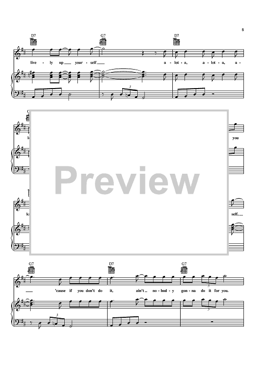 Digital Sheet Music for Lively Up Yourself by Bob Marley scored for Piano/Vocal/Chords; id:370177