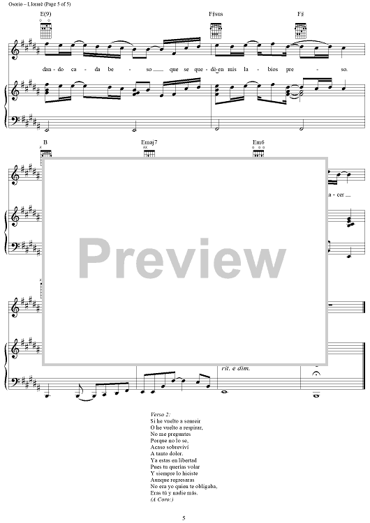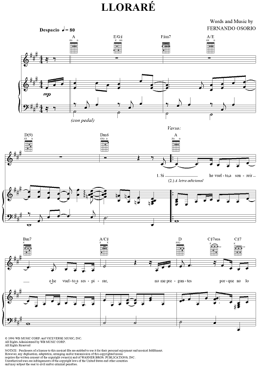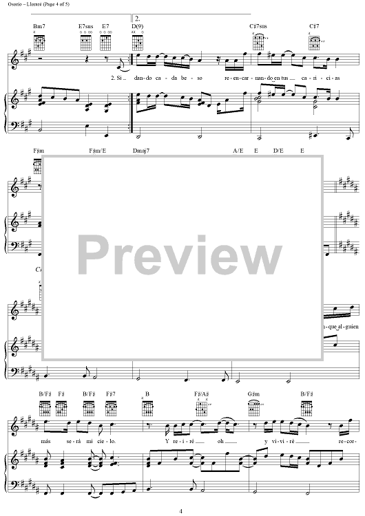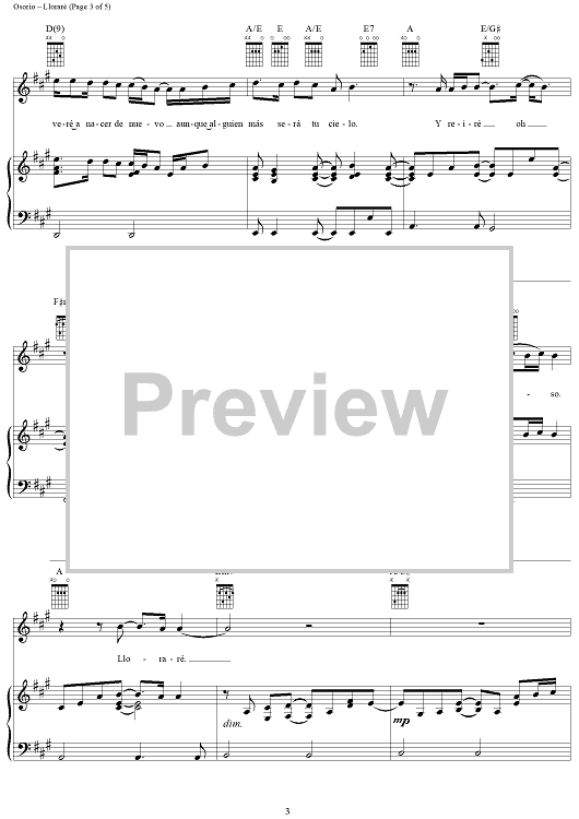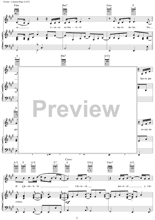 Digital Sheet Music for Lloraré by Fernando Osorio scored for Piano/Vocal/Chords; id:253843