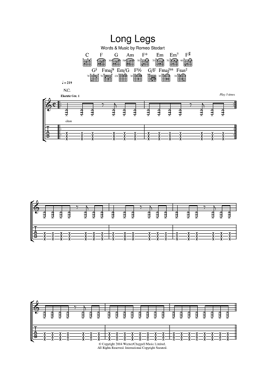 Digital Sheet Music for Long Legs by The Magic Numbers, Romeo Stodart scored for Guitar Tab; id:395878