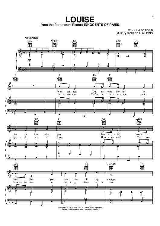 Digital Sheet Music for Louise by Leo Robin, Richard A. Whiting scored for Piano/Vocal/Chords; id:368375