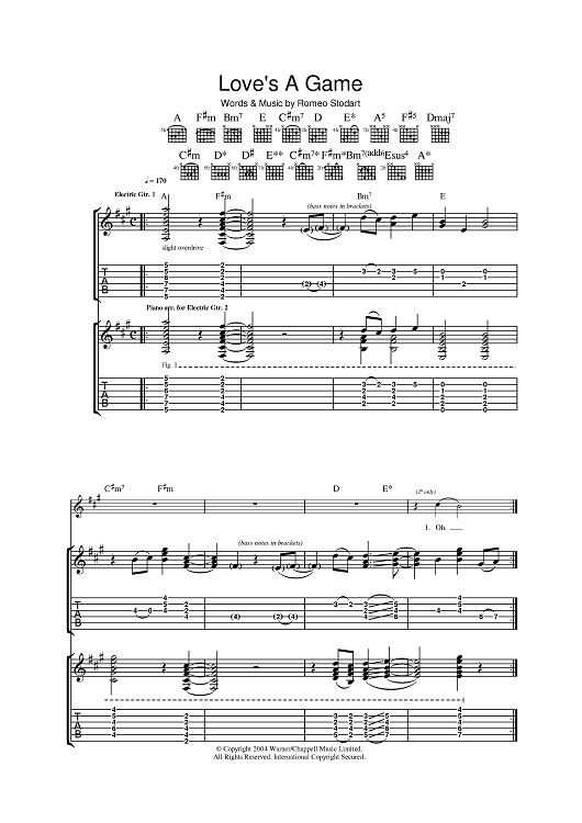 Digital Sheet Music for Love's A Game by The Magic Numbers, Romeo Stodart scored for Guitar Tab; id:395873